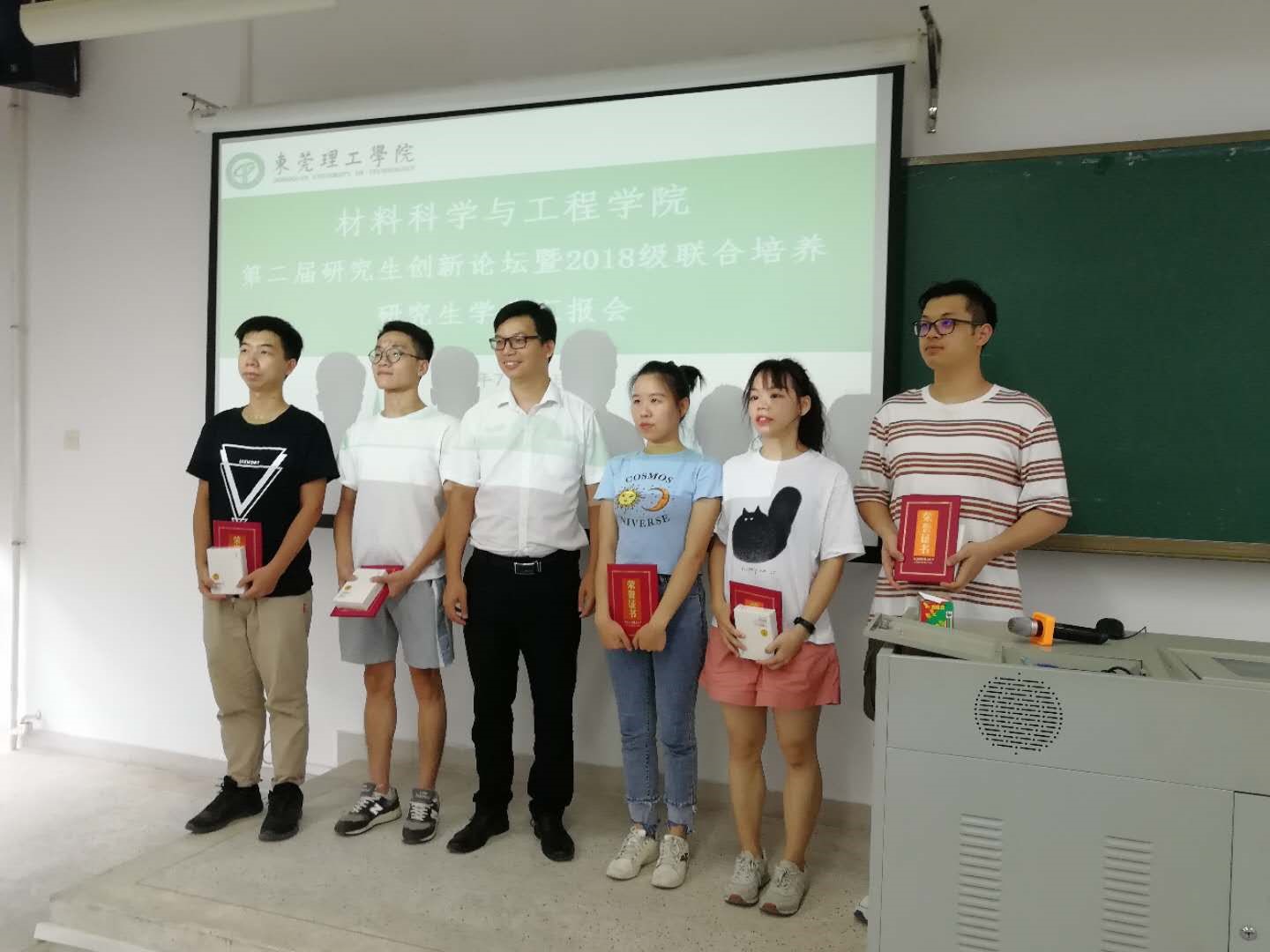 7月17日下午, 太阳城研究生第二届创新论坛暨2018级研究生学业汇报会颁奖仪式在公司阶梯教室(4B212)举行,部分研究生及其莞工导师参加了颁奖仪式。颁奖仪式由金属材料系系主任易爱华主持,王严杰教授,党委副书记陈礼明、王小霞教授分别为获奖同学颁发了获奖证书和学习用品。在颁奖仪式最后,李润霞副经理寄语同学们,希望他们再接再厉,不断进步。