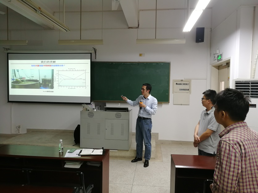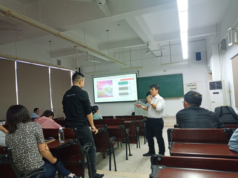报告会上,陈亚楠教授详细讲述了极端环境驱动的纳米材料,如纳米颗粒,二维材料等的超快速组装,及其在能源、催化和新型器件等方面的应用;用于研究表界面科学的冷冻电镜技术;以及新兴的钾离子能源存储。胡适研究员介绍了一种调控液态金属与气体和液体界面实现二维氧化物合成的策略,并对此类物质在电催化二氧化碳还原方面的工作进行了详细分析。两位学者的精彩报告结束后,参会老师与他们进行了热烈的讨论和深入的交流。