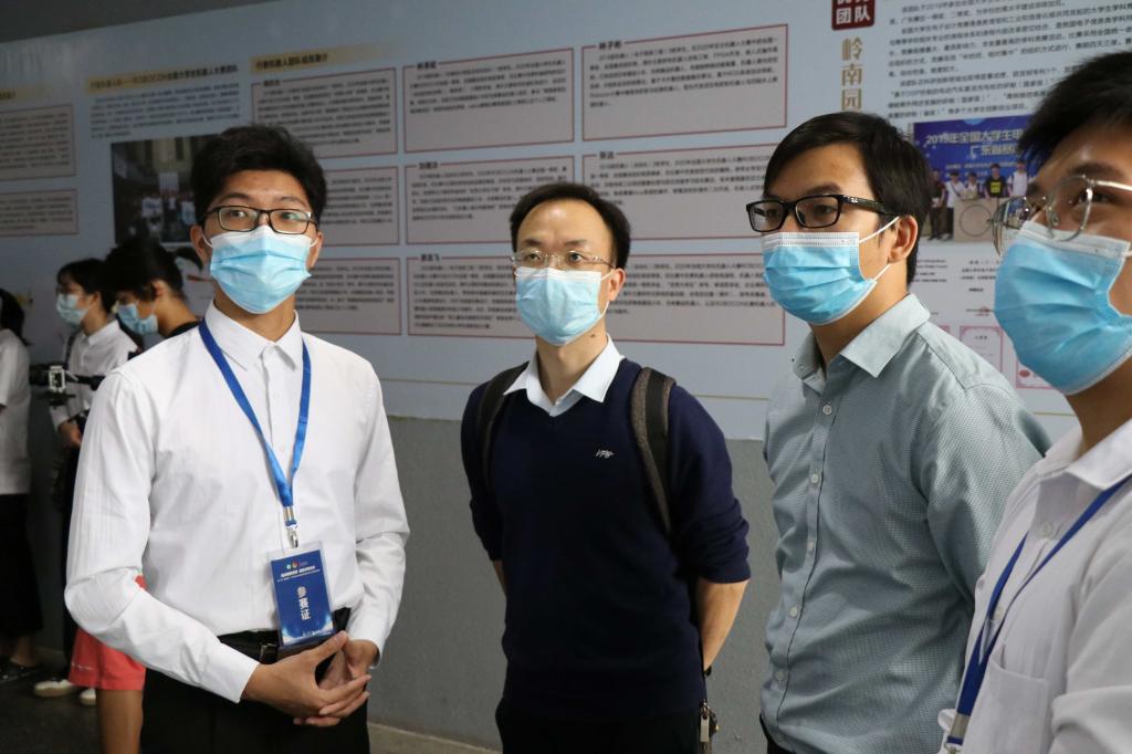 开幕式后,与会的领导、嘉宾及比赛评委纷纷走到各组作品前参观指导。公司的A04组作品受到董事长马宏伟,公司党委副书记李忠红,公司党委委员、宣传部部长邹琼,学研工部部长、员工处处长黄金和,教务处处长兰善红等一行的关注。马董事长饶有兴趣地了解该作品的情况,肯定了同学们的创新精神,鼓励大家扎实学习专业知识,成为勇于担当、善于学习、敢于超越的高素质应用型创新人才。