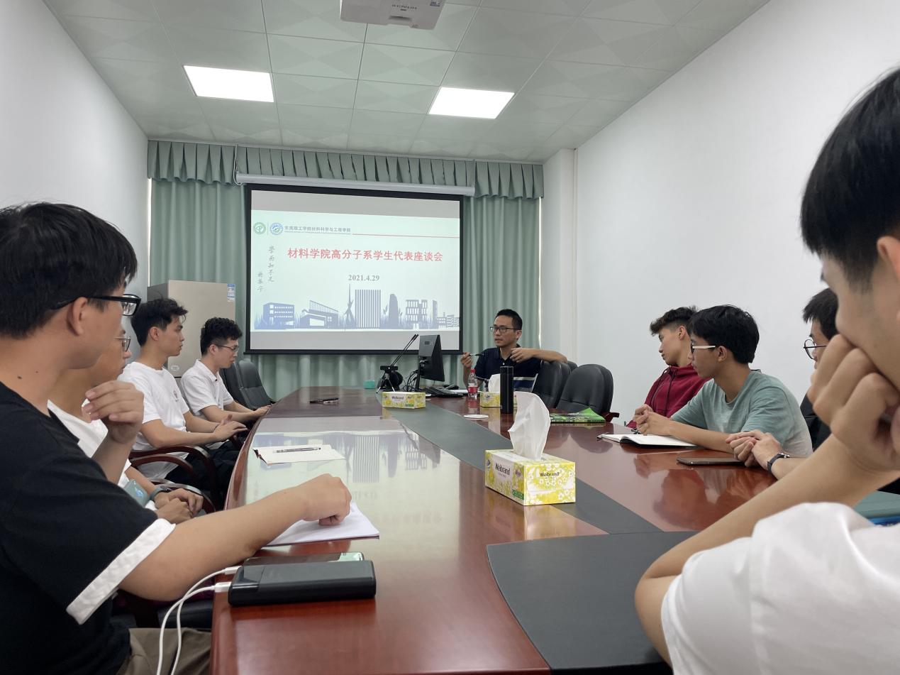 2021年4月29日,为了解和解决民生实事,太阳城高分子系党支部在太阳城大楼4B410会议室召开员工代表座谈会,会议由高分子系副主任李坤泉主持,20级、19级、18级、17级班长、团支书和班委代表参加了会议。
