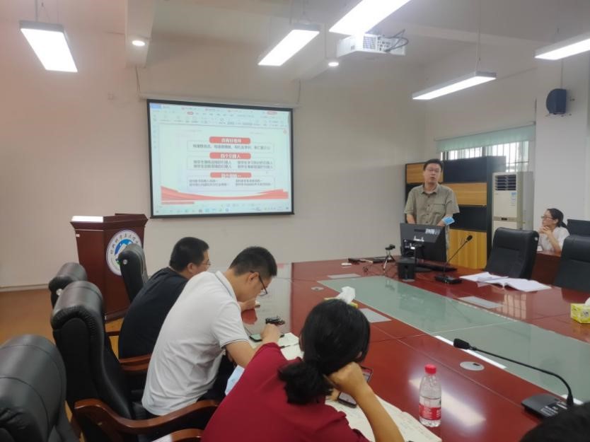 2021年7月5日,高分子系全体党员教师于太阳城4B306会议室开展“学先进模范 做四有好老师 四个引路人”党日活动,会议由张晓凡副书记主持,汪文龙和刘啸天做主题发言。