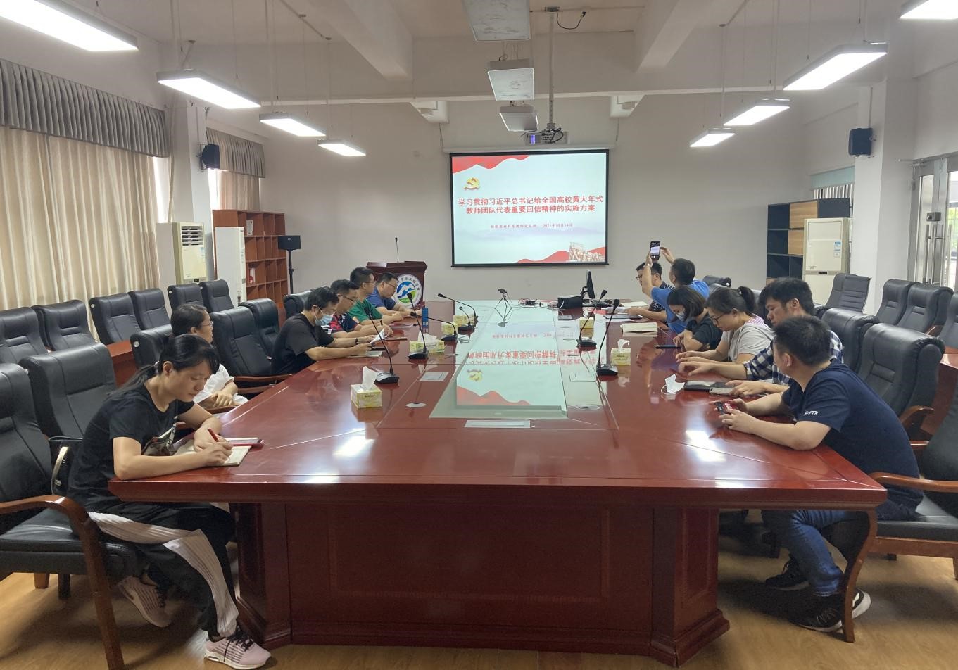 10月14日,在材料楼4B306会议室,新能源材料系教师党支部组织学习贯彻习近平总书记给全国高校黄大年式教师团队代表重要回信精神。参会人员为支部全体党员以及系教职工,会议由新能源材料系党支部书记党海峰主持。