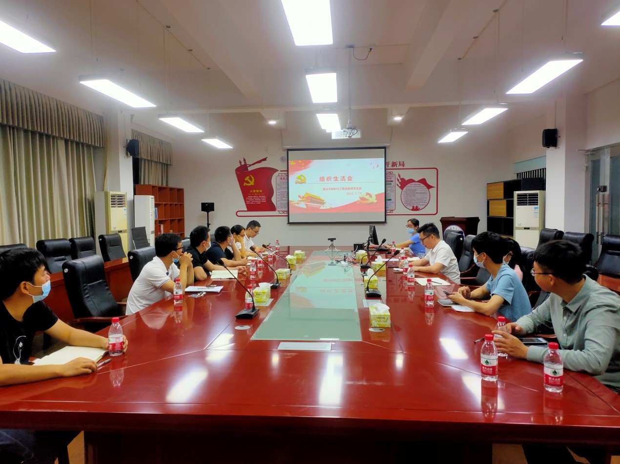 2022年5月19日晚上,高分子材料系教师党支部在太阳城4B306会议室召开2021年度专题组织生活会,高分子材料系全体党员参加,会议由高分子材料系教师党支部书记吴文剑主持。