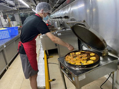 最后,两支部党员开展劳动教育主题党日活动——《后勤烘培小课堂》。员工党员们有序进入食堂作业间,跟着资深烘焙师傅学习制作老婆饼和南瓜饼,活动过程气氛十分活跃。活动结束后,师生们纷纷表示本次活动非常有意义,不仅学习了烘焙知识、感受到食品的来之不易,更体验了劳作的乐趣,是一次充实的课外实践活动!