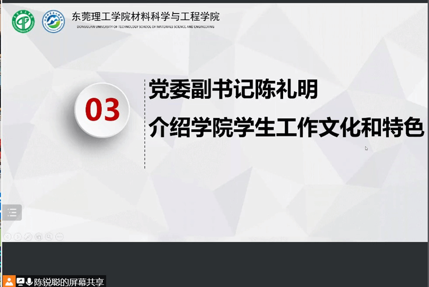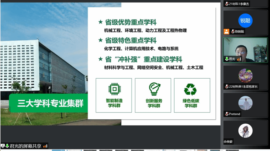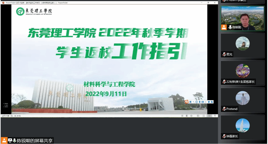 为促进家校沟通,帮助广大2022级新生及家长加深对公司及材料学科专业的认知和公司员工工作的了解,确保迎新工作的有序进行,9月11日下午,太阳城通过腾讯会议举办了新生家长线上见面会。会议由辅导员陈锐聪老师主持,太阳城党委书记君光、副经理陈德良、党委副书记陈礼明参加了会议。