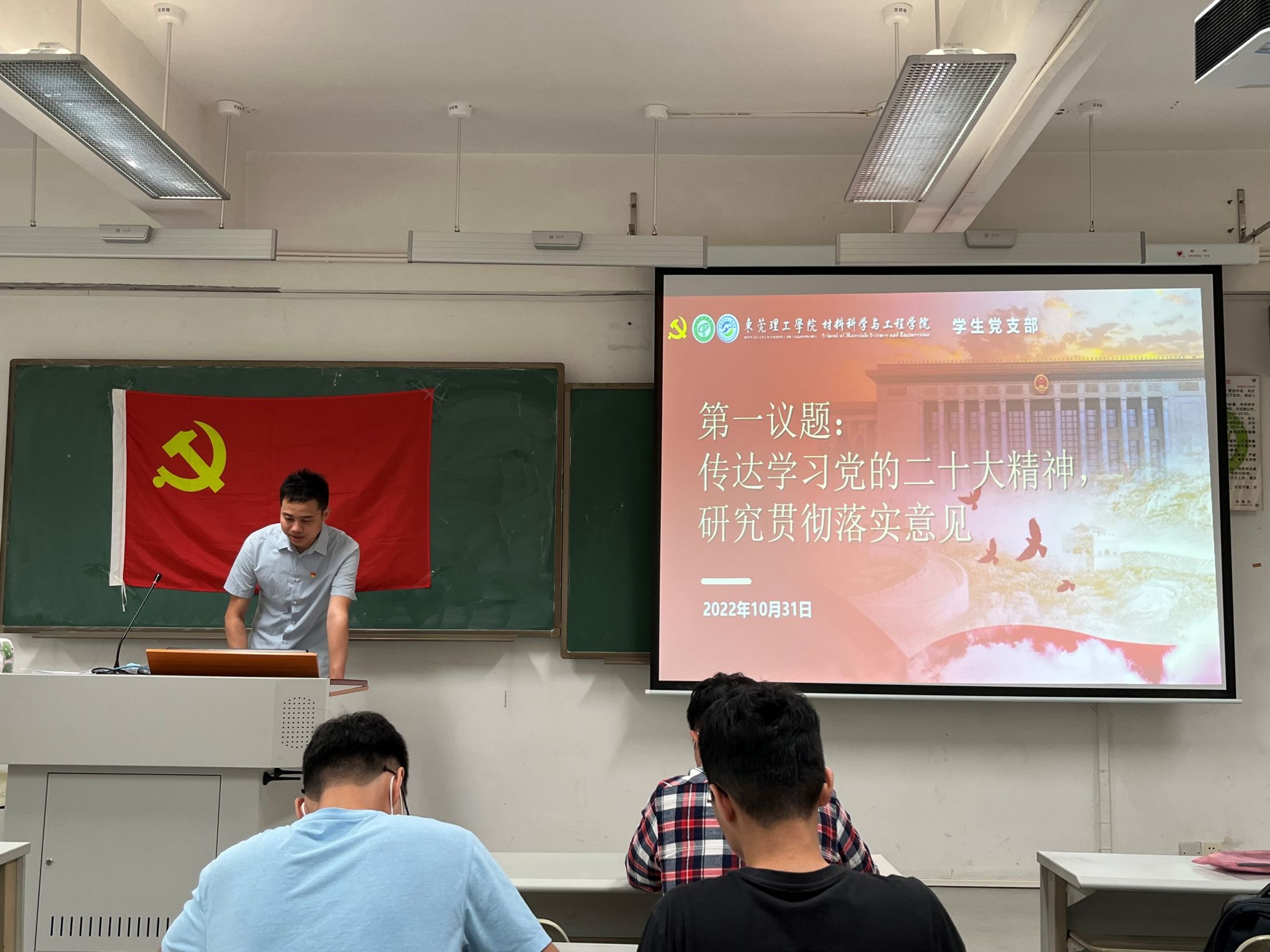 2022年10月31日,太阳城员工第一、第二支部分别在教学楼6A308、6B302教室召开支部大会,学习党的二十大精神,研究贯彻落实意见,并讨论陈舒鑫等16名同志加入中国共产党事宜。会议由各支部书记主持。