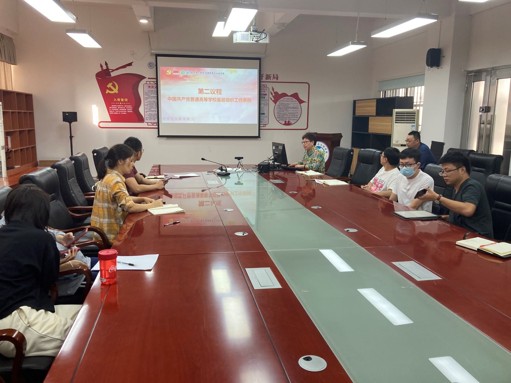 接着,刘丹同志为全体党员解读《中国共产党普通高校基层组织工作条例》(以下简称《条例》),她强调,我们要深刻领会《条例》要求,严格遵守和执行《条例》规定,把党的工作融入日常、抓在经常,切实提升基层组织的组织力,突出党组织的政治功能。
