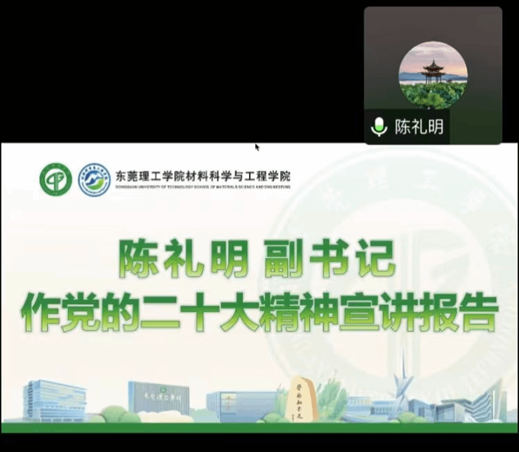 会议伊始,陈礼明副书记作党的二十大精神宣讲报告。他指出,学习贯彻党的二十大精神既要抓好理论学习,也要着重于实践运用,作为国家的新生代,同学们在学好专业知识的同时,也要重视课程思政建设,加强党的理论的学习,创先争优,做一名有能力、有主见,更有责任与担当的爱国青年,方能早日实现材料报国。