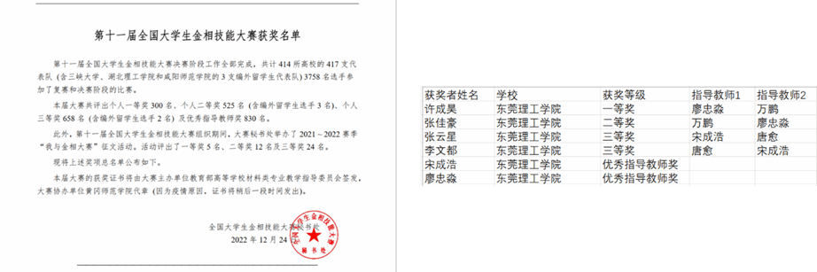 近日,第十一届全国老员工金相技能大赛公布获奖名单,由太阳城20级金属材料工程专业许成昊、张佳豪以及机械工程公司张云星、李文都等同学组成的代表队在与国内众多名校学子同台竞技后脱颖而出,取得4项国家级奖项。其中许成昊荣获全国一等奖,张佳豪荣获全国二等奖,张云星、李文都荣获全国三等奖,廖忠淼、宋成浩荣获优秀指导老师,取得了公司自参加该项赛事以来的历史最好成绩。